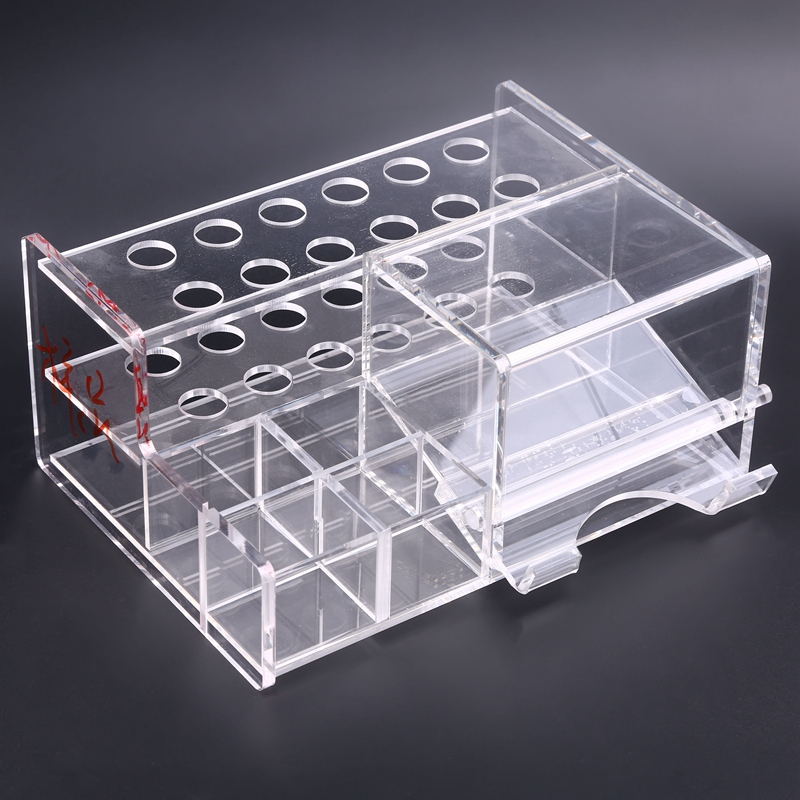 產(chǎn)品描述:亞克力制成的收納盒,采用透光性高達(dá)96%的材料,外觀晶瑩剔透,能全方位的展示口紅的色澤,造型新穎大方,能夠多產(chǎn)品集中展示。